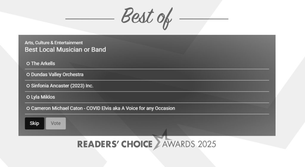 Thank you to everyone who voted for Lyla Miklos in the category of Best Local Musician or Band in the 2025 Hamilton Spectator Readers’ Choice Awards. Congratulations to fellow nominees Arkells, Dundas Valley Orchestra, Sinfonia Ancaster and Cameron Michael Caton. Results will be announced on December 4, 2025.